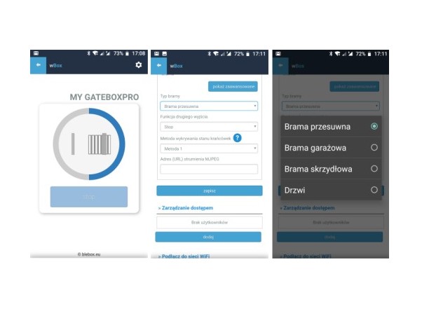 gateBoxPro może sterować dowolną bramą (zarówno wjazdową jaki garażową), posiadającą wejście sterujące (do podłączenia przycisku lub domofonu), a także drzwiami lub furtkami wyposażonymi w zamek elektryczny.