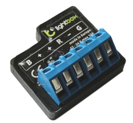 W użyciu sterownik oświetlenia LED RGB pozwalający włączać i wyłączać wielo- i jedno-kolorowe oświetlenie LED, ściemniać je i rozjaśniać a także ustawić praktycznie dowolny kolor z milionów możliwości. W przeciwieństwie do sterowników serii wBox, LightBox dedykowany jest do sterowania pojedynczymi źródłami światła, a także oświetleniem m.in. samochodów, motocykli, jachtów...